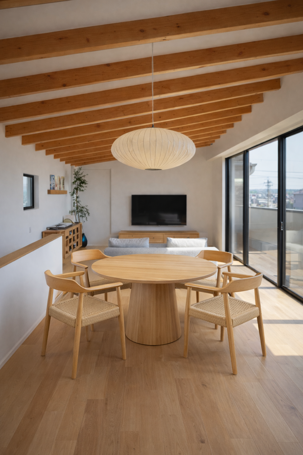 シンプルで美しい、板座面のダイニングチェアです。