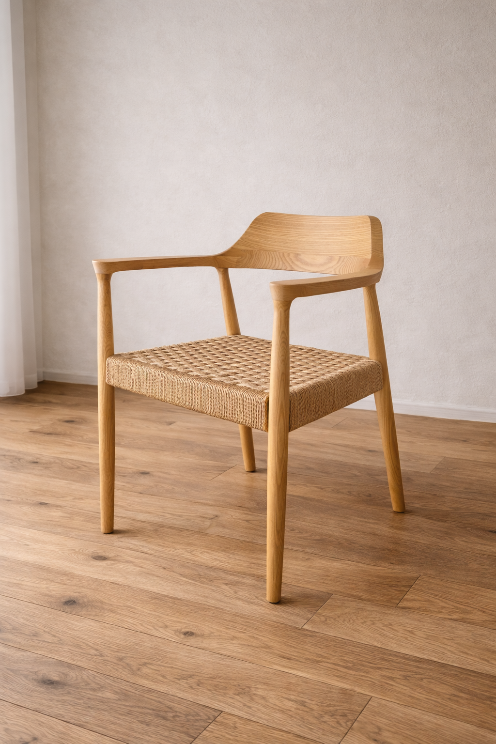 美しいペーパーコードで編まれた座面は、