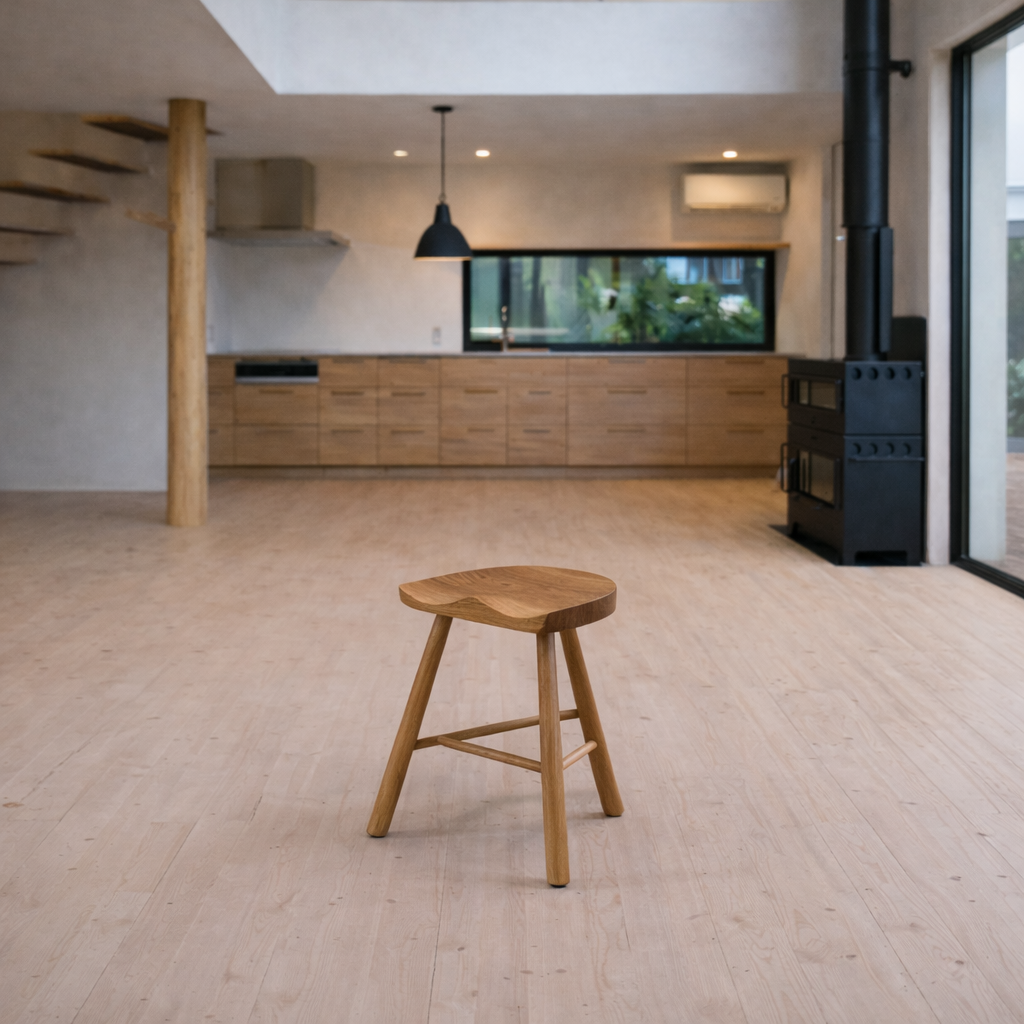 このスツールは、ちょっとした場所にそっと寄り添う家具だ。